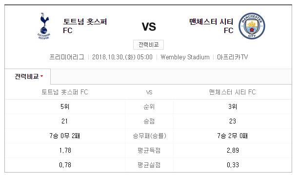프리미어리그(EPL) 토트넘 맨시티 중계