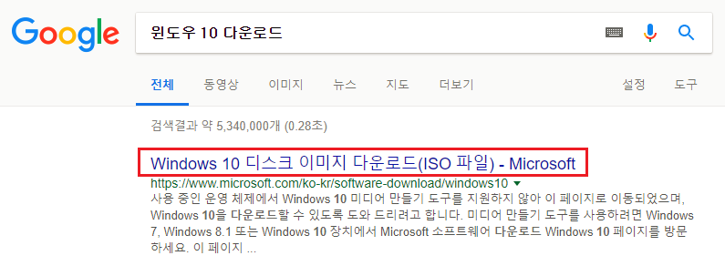 윈도우 10 USB 드라이브
