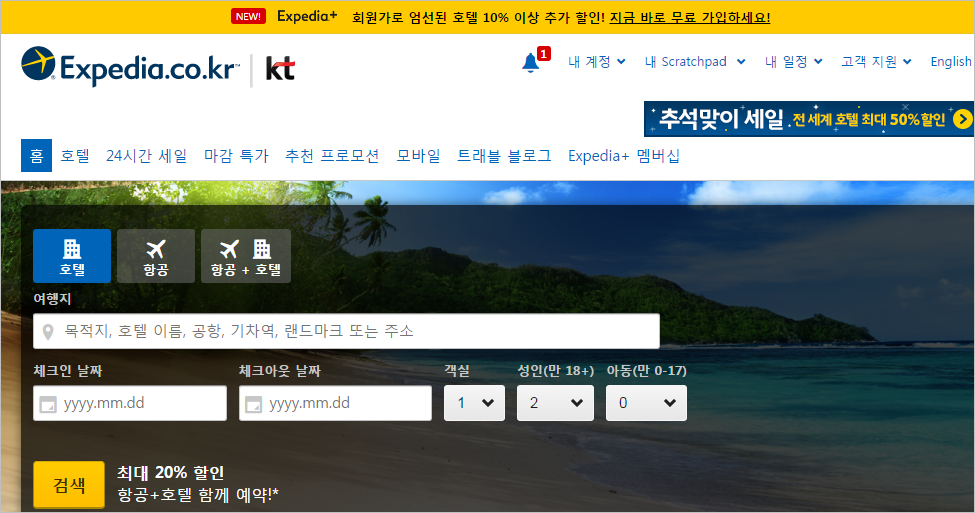 익스피디아! 비자카드 전세계호텔 20% 호텔할인 쿠폰 증정 이벤트!