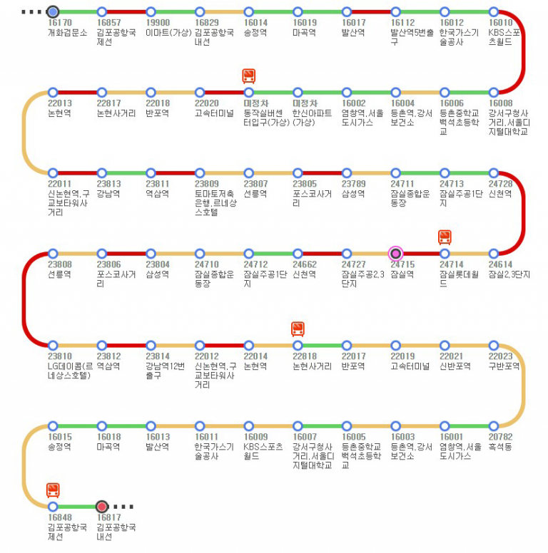 잠실과 김포공항을 운행하는 6000번 리무진버스 시간표